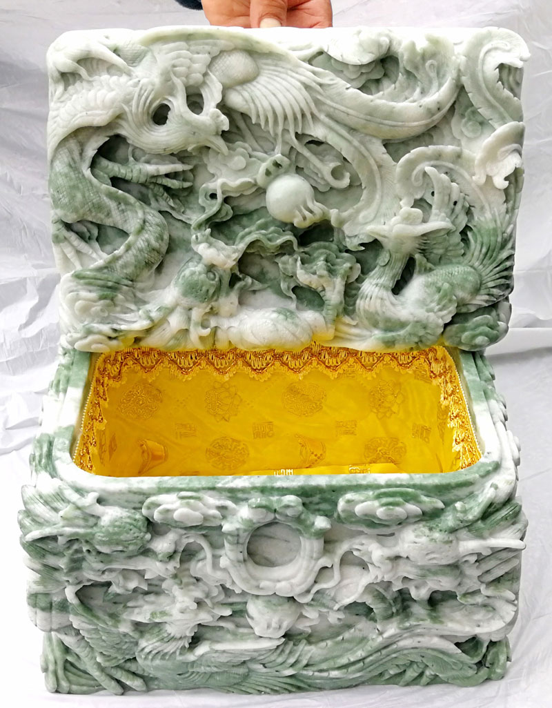 随葬龙凤呈祥 鹤归自然 重庆玉石骨灰盒定制 零售 主城包送货